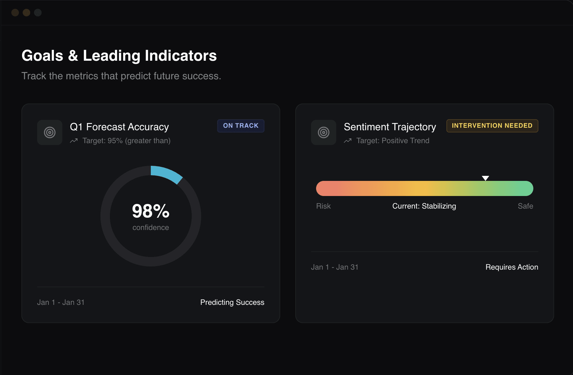 Set your goals and they will automatically be tracked against the performance of your contact center.