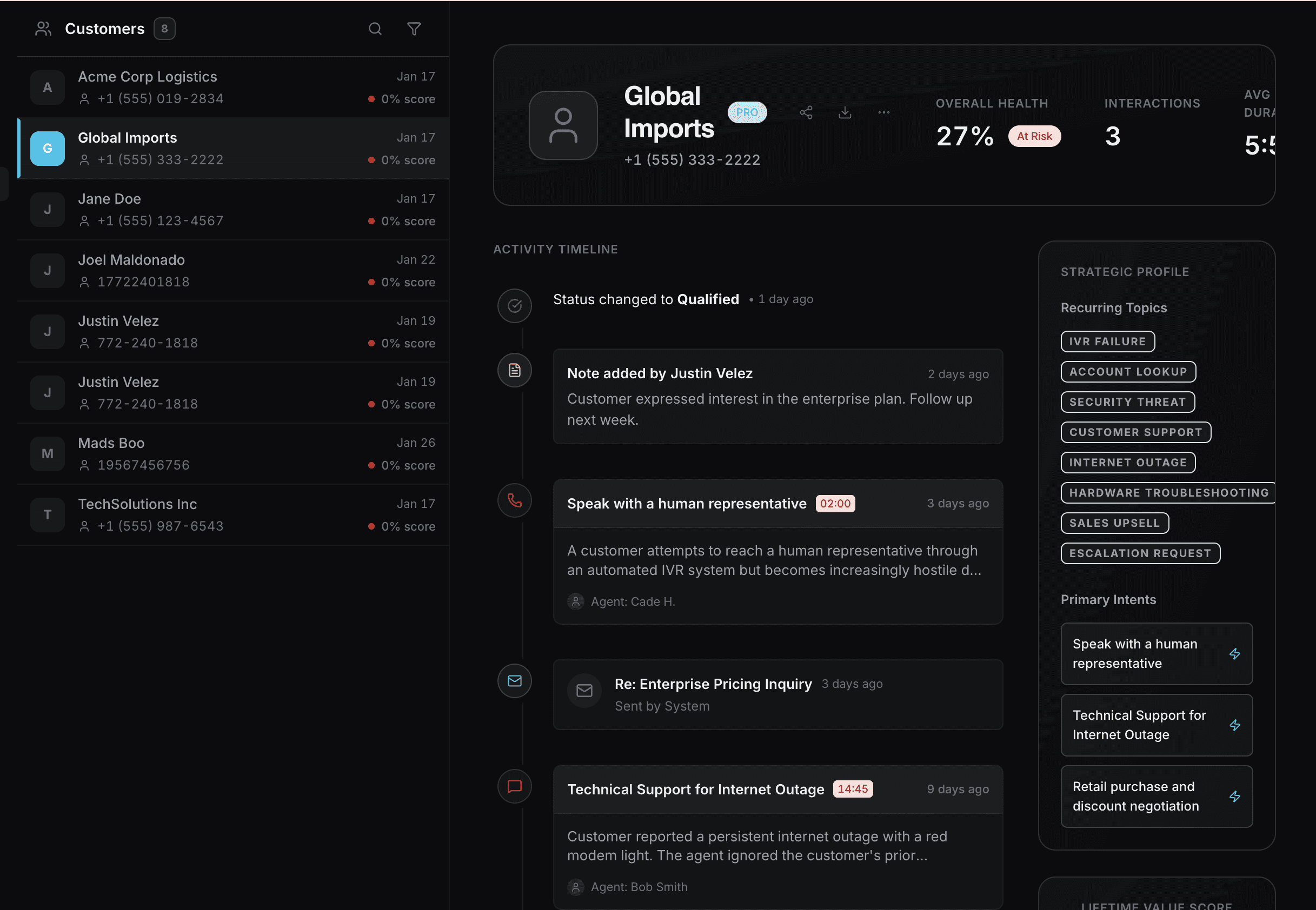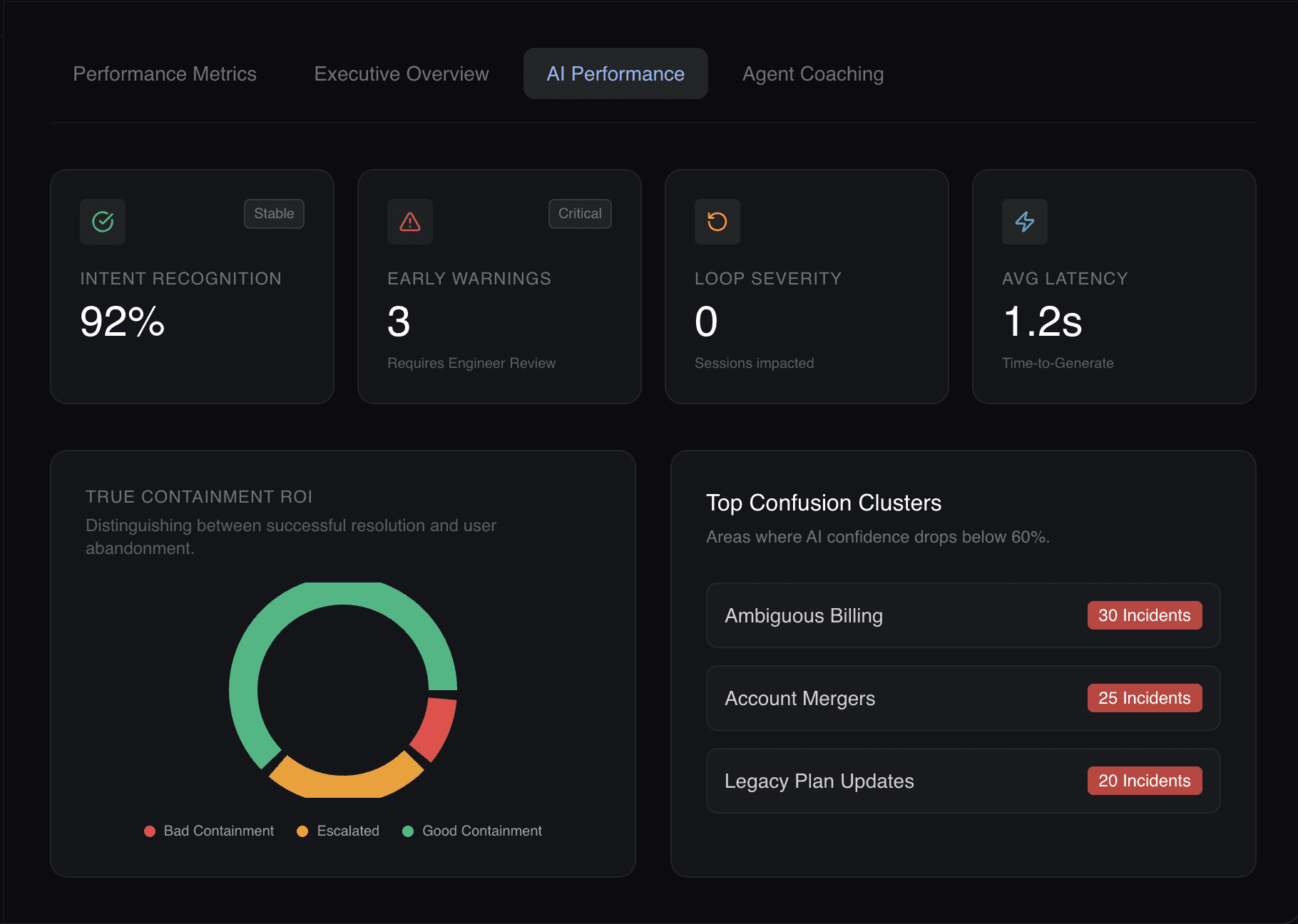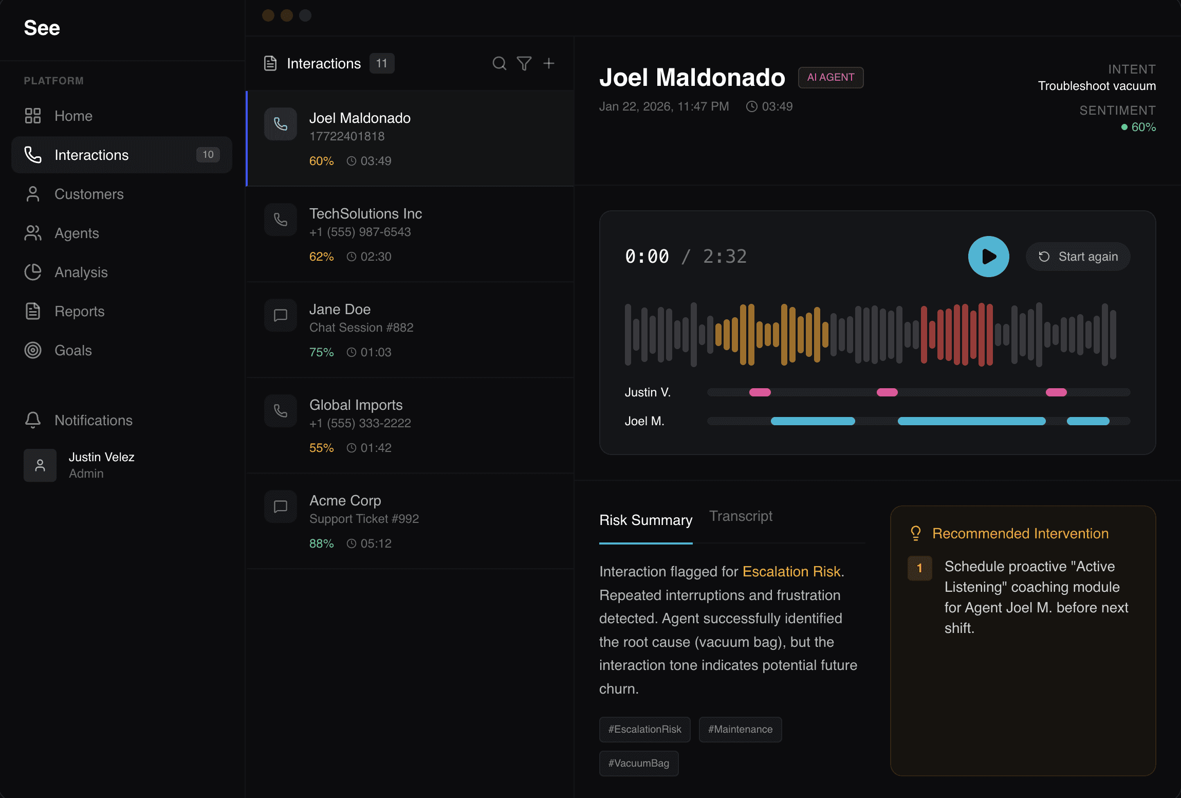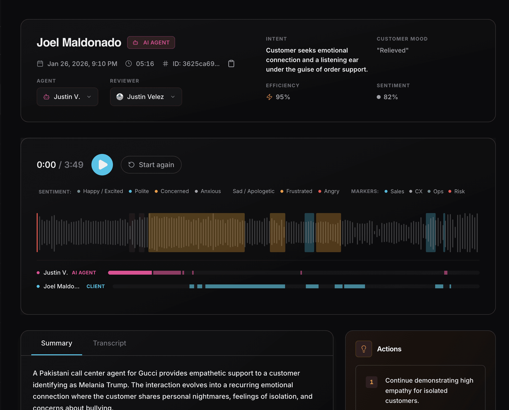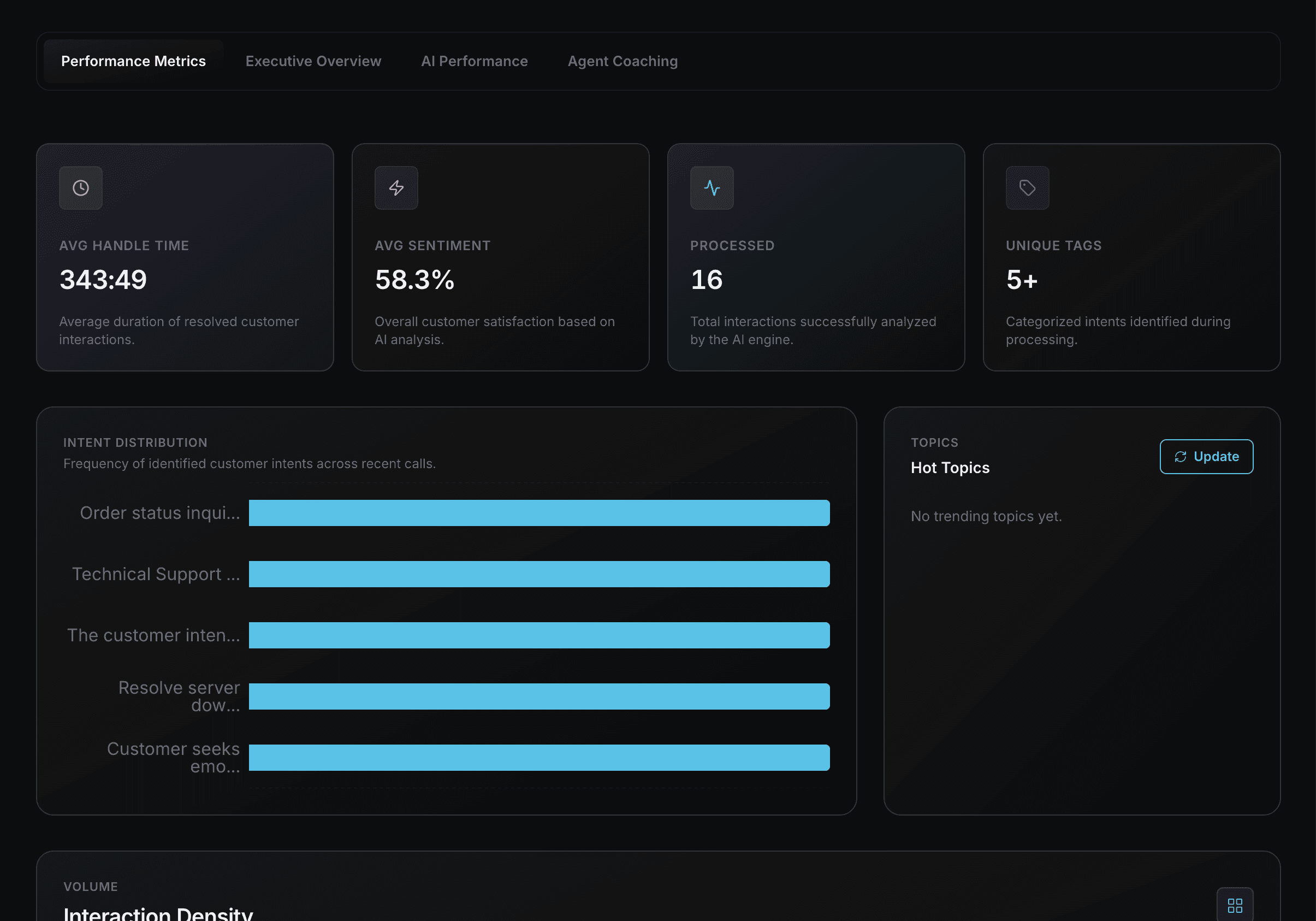 The ultimate command center for contact center analysis. Automate PII redaction, streamline agent coaching, and monitor automation health with a high-density dashboard designed to eliminate noise and surface what matters most.